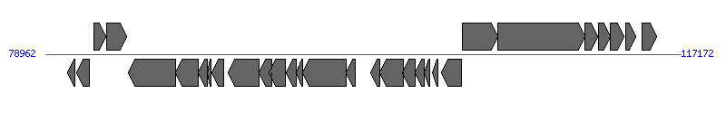 | # | Locus tag (Gene) | Coordinates [+/-], size (bp) | Protein GI | Product | Component | |