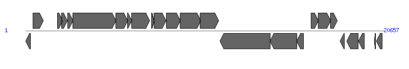 | # | Locus tag (Gene) | Coordinates [+/-], size (bp) | Protein GI | Product | Component | |
