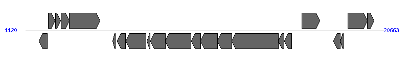 | # | Locus tag (Gene) | Coordinates [+/-], size (bp) | Protein GI | Product | Component | |
