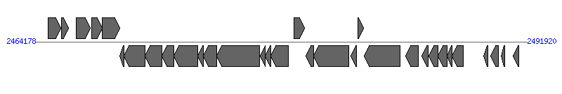 | 27 | Meso_2335 | 2487432..2487686 [-], 255 | 110634680 | hypothetical protein | | |