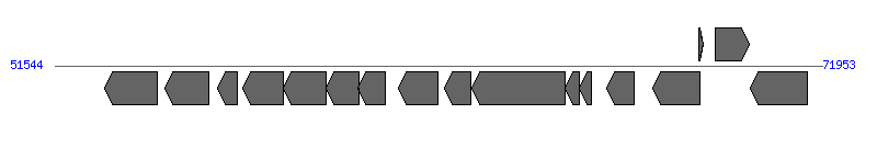 | # | Locus tag (Gene) | Coordinates [+/-], size (bp) | Protein GI | Product | * | |
