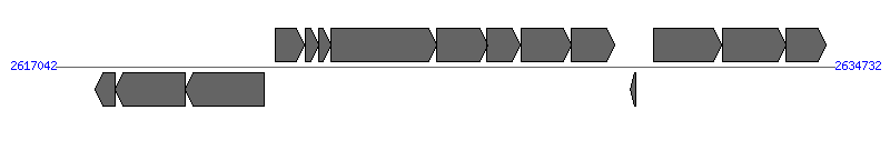 | 13 | CC_2425 (hfsE) | 2630635..2632173 [+], 1539 | 16126664 | HfsE | | |
