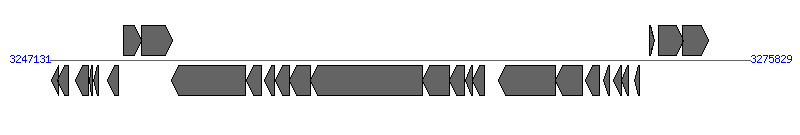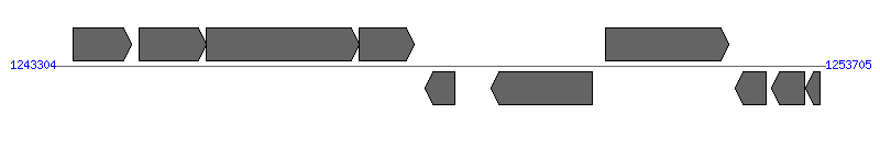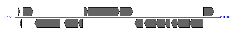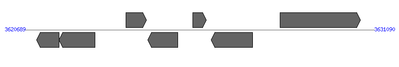 | 13014..13409; 402723..413318; 440995..441615; 1248304..1248705; 3252131..3270829; 3570476..3574182; 3625689..3626090 | |