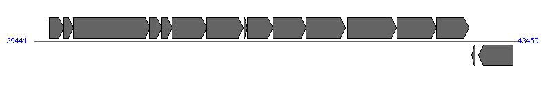 | # | Locus tag (Gene) | Coordinates [+/-], size (bp) | Protein GI | Product | Component | |