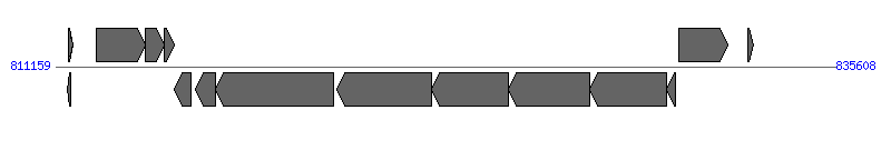 | 10 | WD0856 | 822952..825339 [-], 2388 | 42520691 | hypothetical protein | VirB6 | |