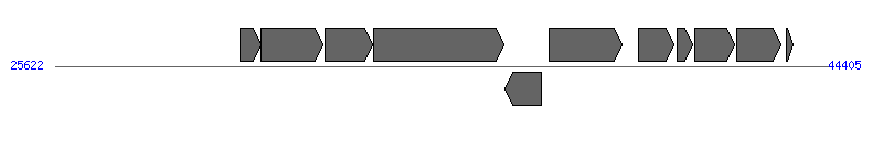 | # | Locus tag (Gene) | Coordinates [+/-], size (bp) | Protein GI | Product | Component | |