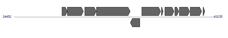 | # | Locus tag (Gene) | Coordinates [+/-], size (bp) | Protein GI | Product | Component | |