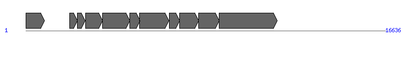 | # | Locus tag (Gene) | Coordinates [+/-], size (bp) | Protein GI | Product | Component | |