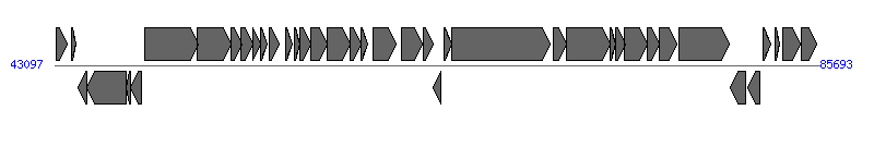 | # | Locus tag (Gene) | Coordinates [+/-], size (bp) | Protein GI | Product | Component | |
