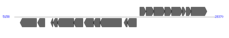 | # | Locus tag (Gene) | Coordinates [+/-], size (bp) | Protein GI | Product | Component | |