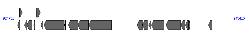 | 17 | SAG0933 | 939030..940415 [-], 1386 | 22537095 | DNA translocase FtsK | Orf21_Tn | |