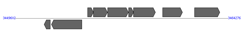| 9 | XNC1_3581 | 3461970..3463715 [+], 1746 | 300724400 | hypothetical protein | | |