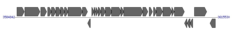 | 20 | Bxe_A1184 | 3601362..3604229 [+], 2868 | 91784615 | hypothetical protein | Tfc16 | |
