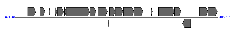 | 14 | KPHS_34850 | 3477240..3478265 [+], 1026 | 378979644 | type IV secretory pathway VirB11 component | VirB11 | |