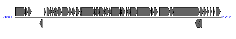 | # | Locus tag (Gene) | Coordinates [+/-], size (bp) | Protein GI | Product | Component | |